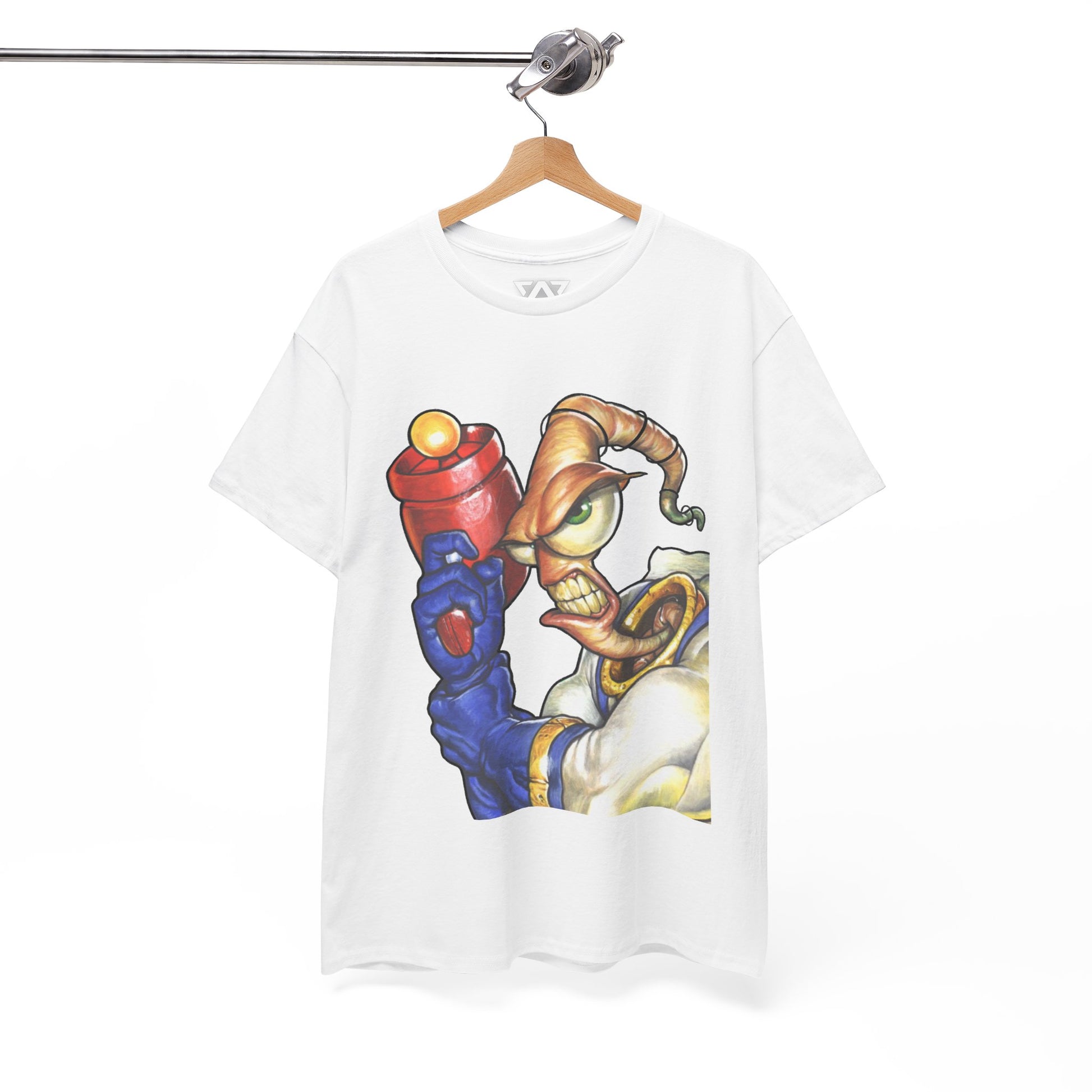 🔥 Bring back the 90’s gaming nostalgia with this exclusive Earthworm Jim graphic tee. Featuring the iconic space-faring worm armed with his signature blaster, this shirt is a must-have for retro gamers and classic cartoon fans alike.